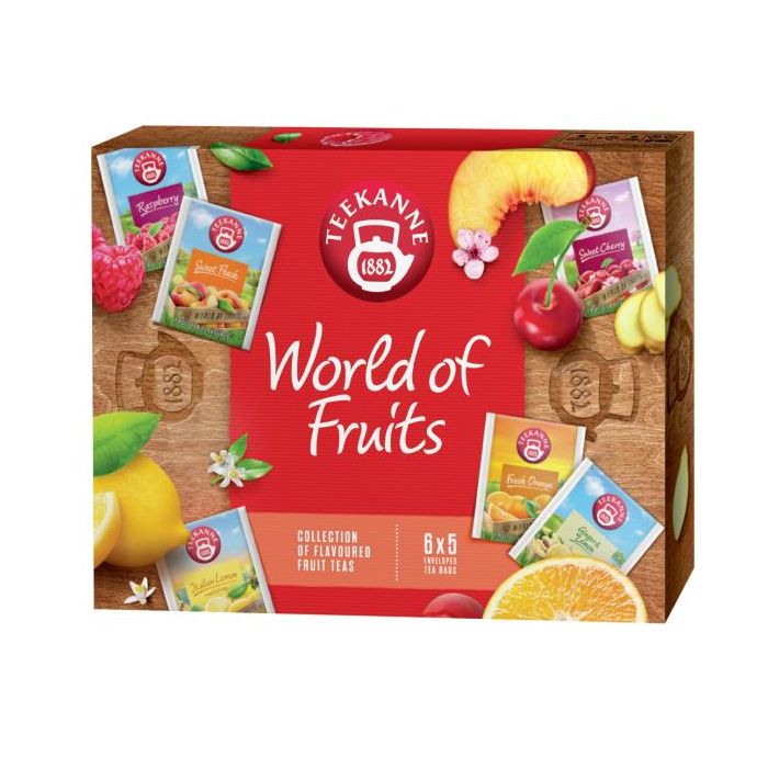 Kolekcia ochutených ovocných čajov. 6 x 5 nálevových vrecúšok.