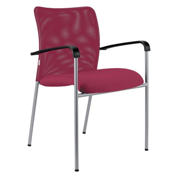 • Stohovateľná konferenčná stolička s látkovým sedákom a sieťkovým operadlom moderného dizajnu.