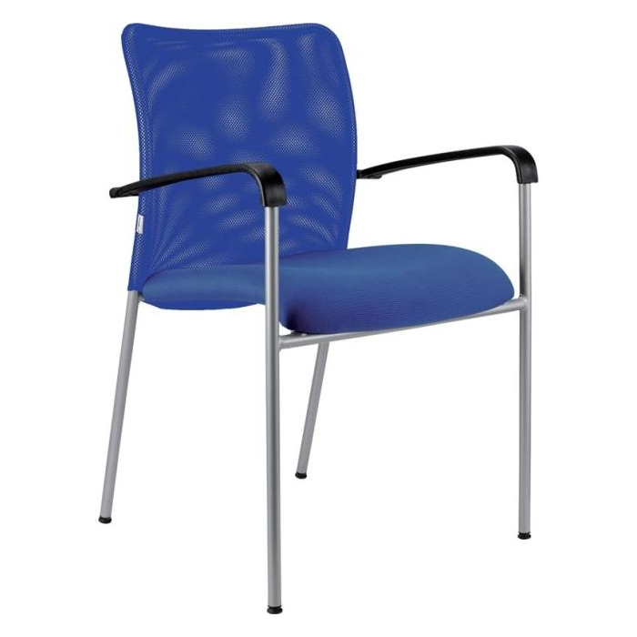 • Stohovateľná konferenčná stolička s látkovým sedákom a sieťkovým operadlom moderného dizajnu.