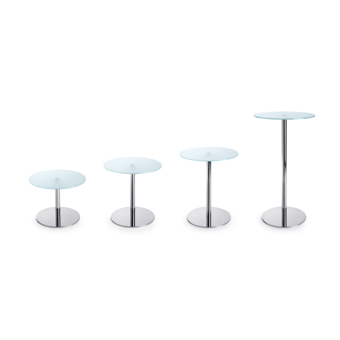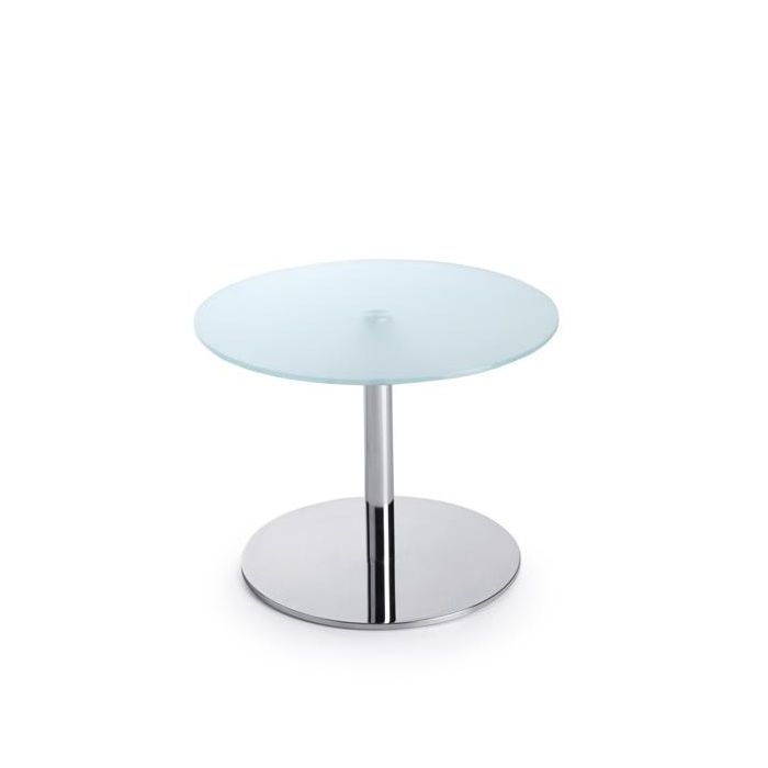 Okrúhlý stolík SR 40, priemer 60 cm, výška 45 cm, tvrdené mliečne sklo, kovová podnož chróm