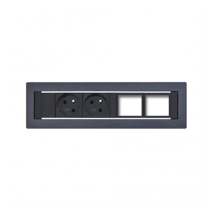 Pokiaľ Vám nevyhovuje žiadny z pevne daných modelov zásuvkových panelov, pripravili sme pre Vás konfigurovateľné panely v dvoch verziách a dvoch farebných prevedeniach. Moduly elektrických zásuviek sú zabudované už od výroby. Ďalšie moduly sú prázdne a umožňujú Vám vybrať si konektory, ktoré na Vašom pracovisku potrebujete. Do voľného priestoru vložíte rámček, do ktorého nasadíte konektor v štandardizovanom prevedení. V prípade potreby môžete po čase vymeniť pôvodne vybrané konektory za iné.