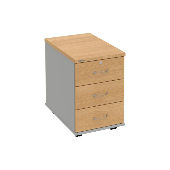 Kontajnery - všetko uložené a vždy poruke. Kontajnery sa väčšinou umiestňujú pod stoly. Mobilné modely sú vybavené kolieskami, je možné ich premiestniť podľa potreby. Základným materiálom korpusov je kvalitná laminovaná drevotriesková doska hrúbky 18 mm. Pre dlhšiu životnosť je na horný diel korpusu použitá doska, ktorej hrúbka je 25 mm. Korpusy a čelá zásuviek sú chránené proti poškodeniu hranou ABS 2 mm. Horná doska ma hĺbku 80. 3-zásuvkový kontajner má uzamykatelnú iba 1 zásuvku. Zásuvky sú z plastu, ktorý je ľahko umývateľný a vhodný pre jednoduchú údržbu. Praktickou súčasťou vrchnej zásuvky je prehľadný organizér a priestorové deliace priečky. Vaše ceruzky, sponky a ďalšie kancelárske potreby budú vždy na poriadku. Organizér a deliace priečky sú súčasťou každého kontajnera. Na kontajnery Hobis sa vzťahuje päťročná záruka.