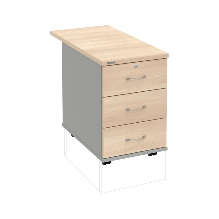 Kontajnery - všetko uložené a vždy poruke. Kontajnery sa väčšinou umiestňujú pod stoly. Mobilné modely sú vybavené kolieskami, je možné ich premiestniť podľa potreby. Základným materiálom korpusov je kvalitná laminovaná drevotriesková doska hrúbky 18 mm. Pre dlhšiu životnosť je na horný diel korpusu použitá doska, ktorej hrúbka je 25 mm. Korpusy a čelá zásuviek sú chránené proti poškodeniu hranou ABS 2 mm. Horná doska ma hĺbku 80. 3-zásuvkový kontajner má uzamykatelnú iba 1 zásuvku. Zásuvky sú z plastu, ktorý je ľahko umývateľný a vhodný pre jednoduchú údržbu. Praktickou súčasťou vrchnej zásuvky je prehľadný organizér a priestorové deliace priečky. Vaše ceruzky, sponky a ďalšie kancelárske potreby budú vždy na poriadku. Organizér a deliace priečky sú súčasťou každého kontajnera. Na kontajnery Hobis sa vzťahuje päťročná záruka.