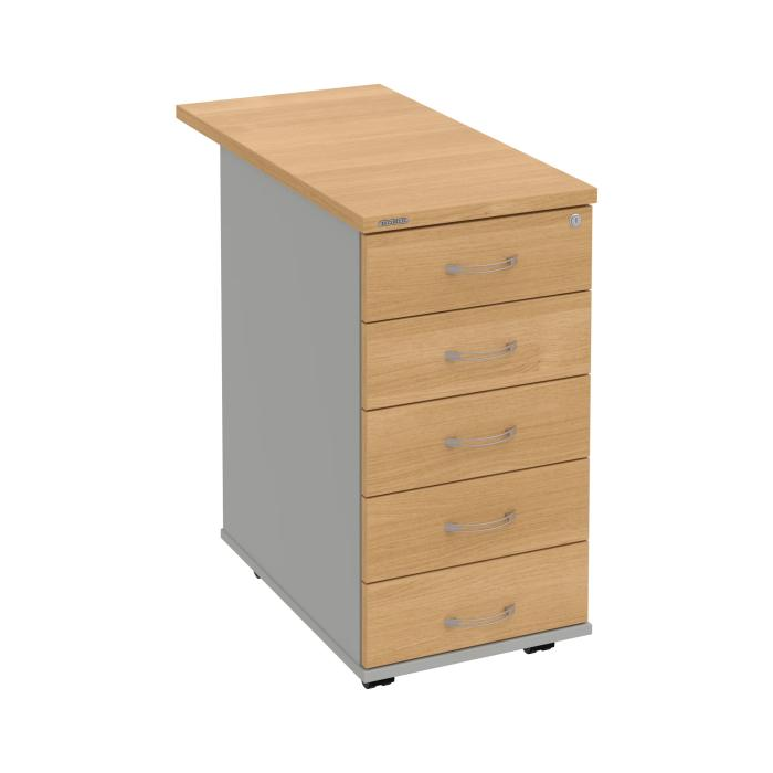 Kontajnery - všetko uložené a vždy poruke. Kontajnery sa väčšinou umiestňujú pod stoly. Mobilné modely sú vybavené kolieskami, je možné ich premiestniť podľa potreby. Základným materiálom korpusov je kvalitná laminovaná drevotriesková doska hrúbky 18 mm. Pre dlhšiu životnosť je na horný diel korpusu použitá doska, ktorej hrúbka je 25 mm. Korpusy a čelá zásuviek sú chránené proti poškodeniu hranou ABS 2 mm. Horná doska ma hĺbku 80 cm. Kontajnery sú vybavené zámkom s centrálnym zamykaním. Vďaka integrovanému systému STOP-CONTROL s centrálnym zámkom u väčšiny kontajnerov sa nemusíte báť prevrhnutiu kontajnera alebo prípadného privretia ruky. Systém zaručí, že pri otvorení jednej zásuvky sa ostatné zásuvky automaticky zablokujú. Zásuvky sú z plastu, ktorý je ľahko umývateľný a vhodný pre jednoduchú údržbu. Praktickou súčasťou vrchnej zásuvky je prehľadný organizér a priestorové deliace priečky. Vaše ceruzky, sponky a ďalšie kancelárske potreby budú vždy na poriadku. Organizér a deliace priečky sú súčasťou každého kontajnera. Na kontajnery Hobis sa vzťahuje päťročná záruka.