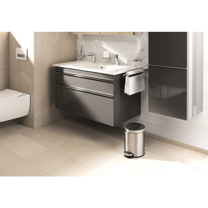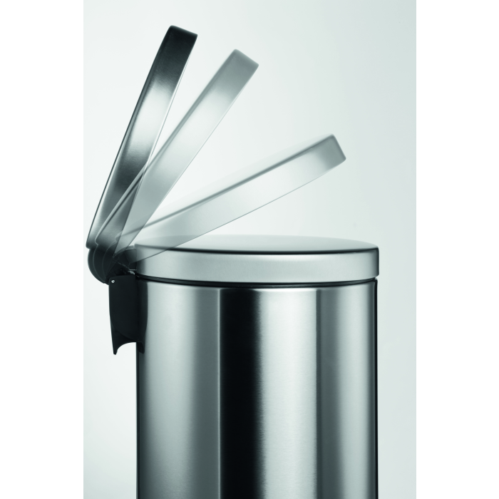 na vrecko na odpadky. Spodná časť z plastu proti korózii a pre lepšiu stabilitu. Veko na pedál sa zatvára ticho. Úprava z nerezovej ocele je potiahnutá vrstvou proti neželaným odtlačkom prstov. Objem 5 l, rozmery 260 x 290 mm.