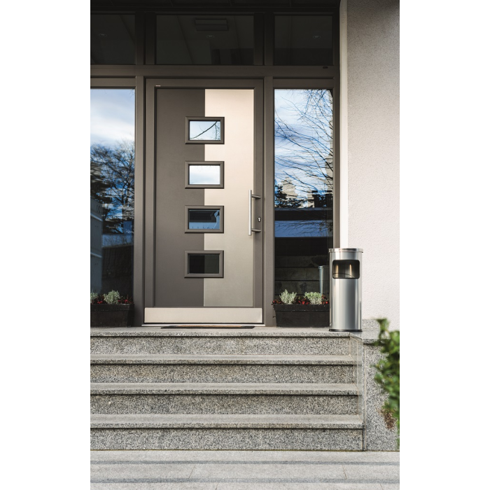 Smetný kôš na papier a popolník v jednom. Objem koša 17 l, výška 630 mm, priemer 250 mm. Objem popolníka 2 l, výška 60 mm, priemer 240 mm. Farba: strieborná