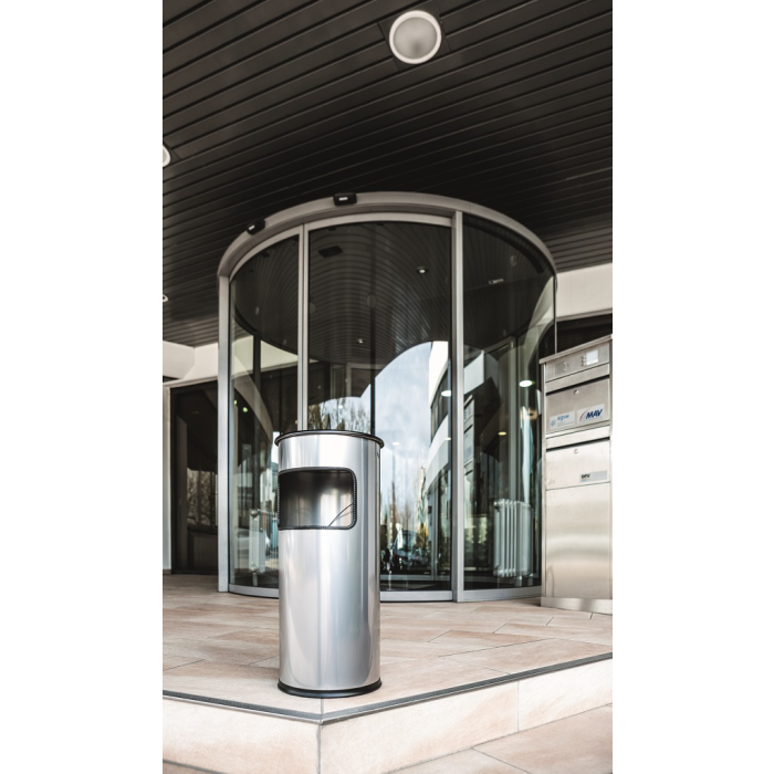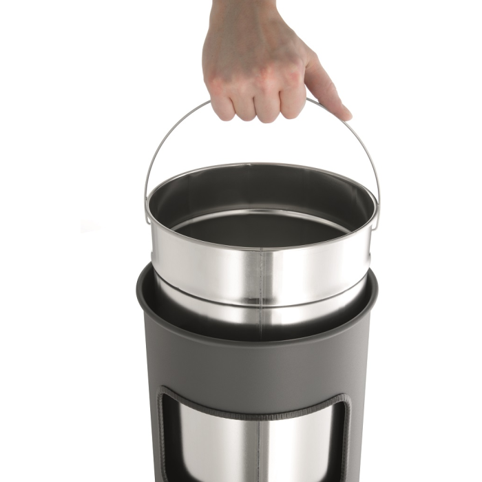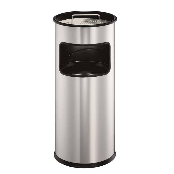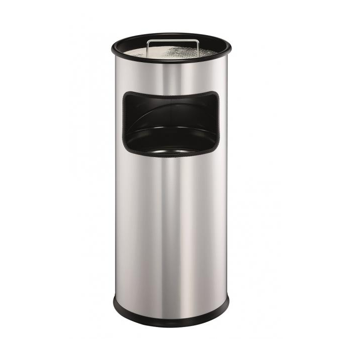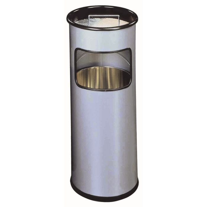 Kovový kôš na odpadky s vyberateľným zinkovým vnútrom a vyberateľným popolníkom naplneným pieskom /1,5 kg/ . Vhodný na použitie v interiéry aj v exteriéry. Objem koša 17 l, výška 620 mm, priemer 260 mm. Objem popolníka 2 l. Farba strieborná.