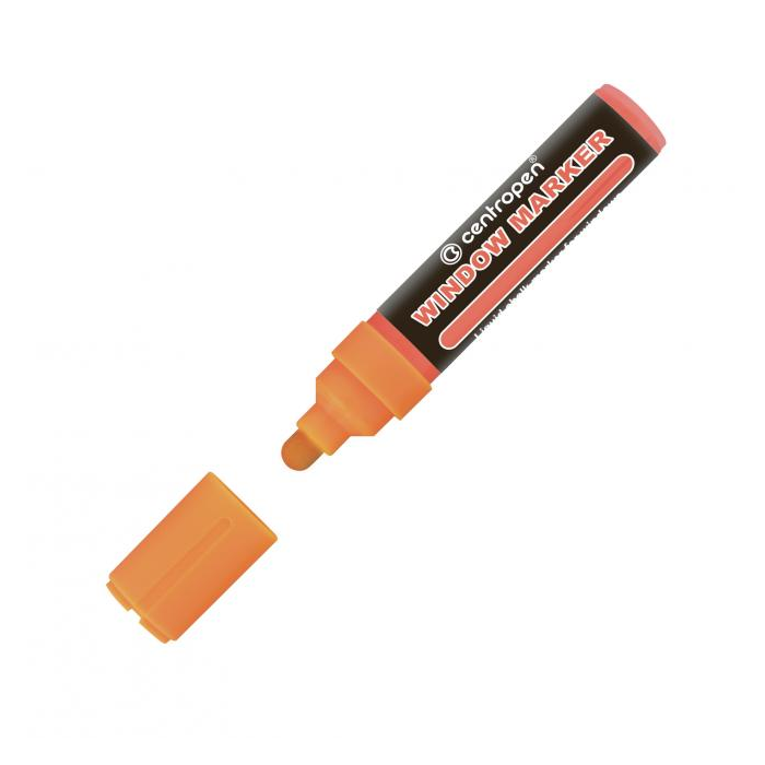 Špeciálny popisovač na neporézne povrchy (okná, zrkadlá, výklady). Tekutá krieda na vodnej báze so silnými krycími schopnosťami, svetlostála, stierateľná. Guľatý hrot, šírka stopy 3 - 4 mm. Väčšie balenie 5 ks v jednej farbe. Farba oranžová.