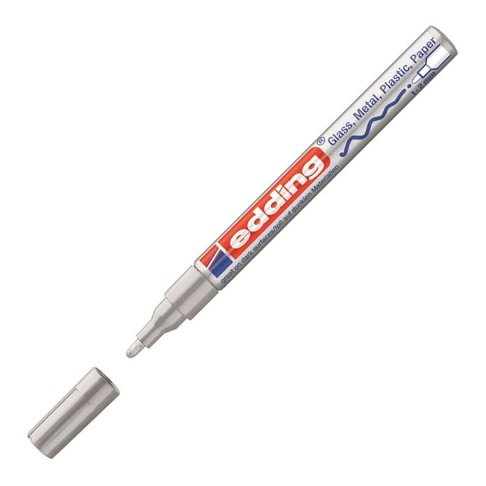Lakový popisovač s hliníkovým obalom, vhodný pre vodovzdorné písanie, značkovanie a kreslenie na takmer všetky materiály. Hrot okrúhly, šírka stopy 1 - 2 mm. Väčšie balenie 10 ks. Farba: strieborná.