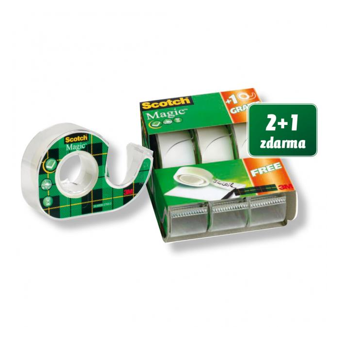 Lepiaca páska Scotch Magic, 19 mm x 7,5 m, s dispenzorom, 2+1 zdarma