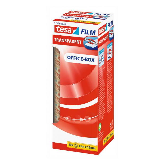 Štandardná priesvitná lepiaca páska obľúbená v školách, materských školách, v mnohých domácnostiach alebo kanceláriách. Používa sa ako baliaca páska, páska na ručné práce alebo dekorácie. Je vyrobená z čírej fólie bez obsahu PVC a je potiahnutá lepiacou vrstvou bez rozpúšťadiel. Ponúka silné lepiace účinky a odolnosť voči roztrhnutiu, aj pôsobeniu času. Odvíja sa potichu a dá sa použiť s ľubovoľným ručným alebo stolným odvíjačom pások tesafilm®. Rozmery 15 mm × 33 m. Balenie 10 ks.