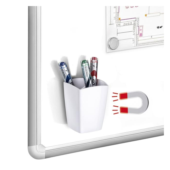 Držiak popisovačov magnetický 530MG, vyrobený z plastu, 2 priehradky, farba biela.