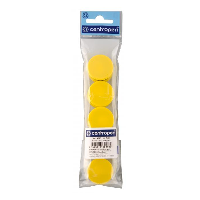 Silné magnety pre magnetické tabule zaliate v plaste. Balenie 10 ks. Farba žltá.