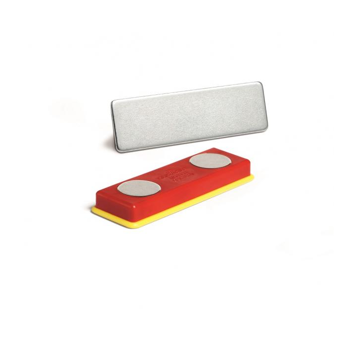 Silný samolepiaci povrch na kovovej platničke sa prilepí horizontálne alebo vertikálne na kartu alebo visačku. Časť s dvomi magnetmi sa podloží pod vrecko a spojí s visačkou. Jednoduché a šetrné, dobrá fixácia. Nevhodné pre ľudí s kardiostimulátorom. Balenie 10 kusov.