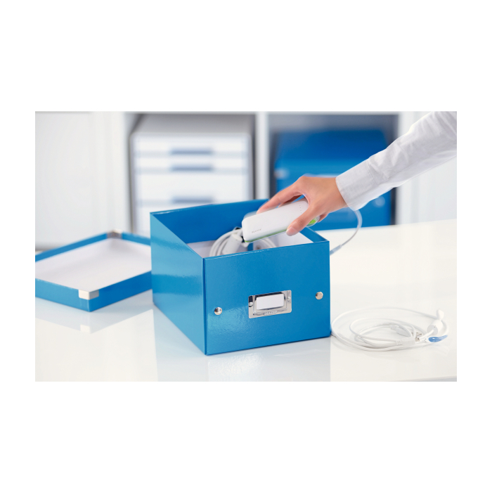 Univerzálna malá archivačná krabica (pre formát A5). Skladacia pre úsporu miesta, keď sa nepoužíva. Rámik na popisovací štítok. Laminovaný povrch a kovové rohy pre lepšiu a trvalejšiu ochranu. Moderný design, ktorý sa bude skvelo vynímať v každej kancelárii.Jednoduché zloženie a vysoká stabilita vďaka vylepšenej konštrukcii krabice. Veľkosť krabice odpovedá bežným kancelárskym rozmerom (na formát A5). Dodajte svojmu pracovnému miestu alebo domácnosti farbu a skombinujte krabicu s ostatnými kancelárskymi výrobkami z radu Leitz WOW. Rámik na štítok pre ľahké popisovanie. Materiál pevný kartón potiahnutý polaminovaným papierom. Vnútorné rozmery (Š x V x H): 200 x 148 x 250 mm. Farba metalická modrá.