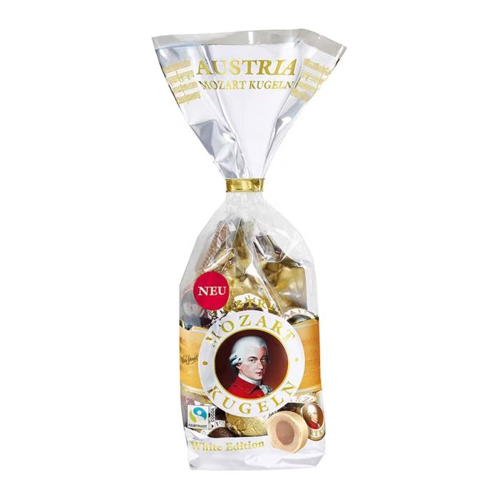 Bonbóny z bielej čokolády s marcipánovou náplňou a nugátovým krémom.