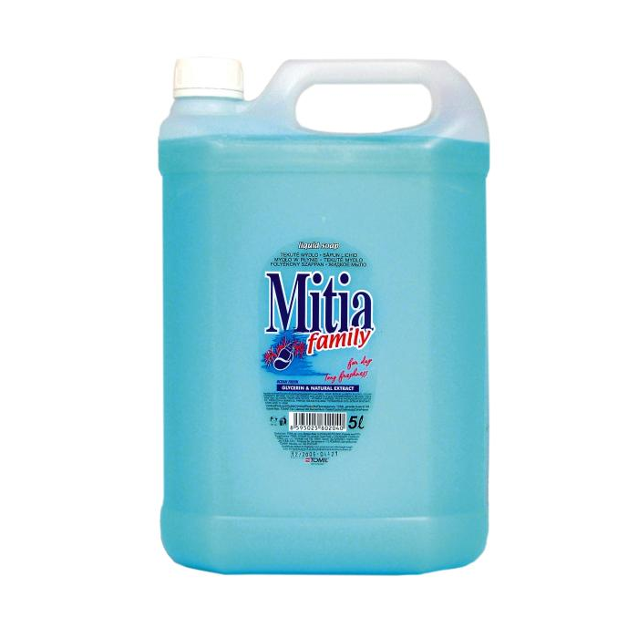 Tekuté mydlo vo veľkej plastovej nádobe. Väčšie balenie 3 ks. Objem: 5 l