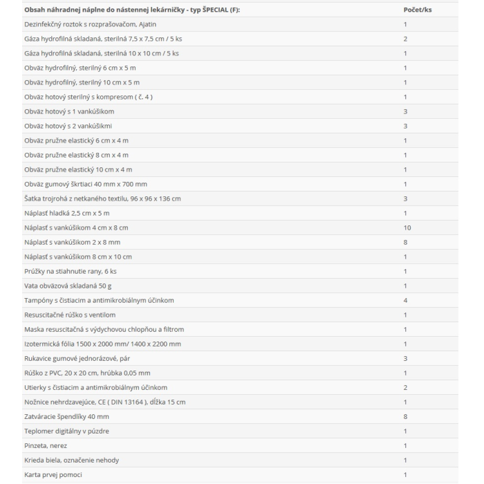 | Popis | náplň do lekárničky |