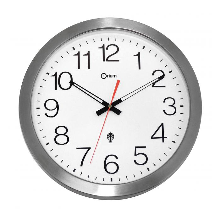 Vodeodolné nástenné hodiny pre vnútorné i vonkajšie použitie, riadené rádiovým signálom s automatickým nastavením času a zmenou letného a zimného času. Ochranné minerálne sklo, veľký biely displej s čiernymi arabskými číslicami a červenou sekundovou ručičkou. Materiál nerezová oceľ, priemer 35 cm. Batéria AA je súčasťou balenia. Rám strieborný.