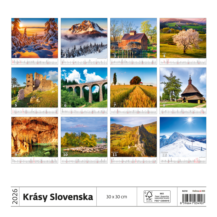 Nástenný kalendár krásy Slovenska 30 x 30 cm 2026