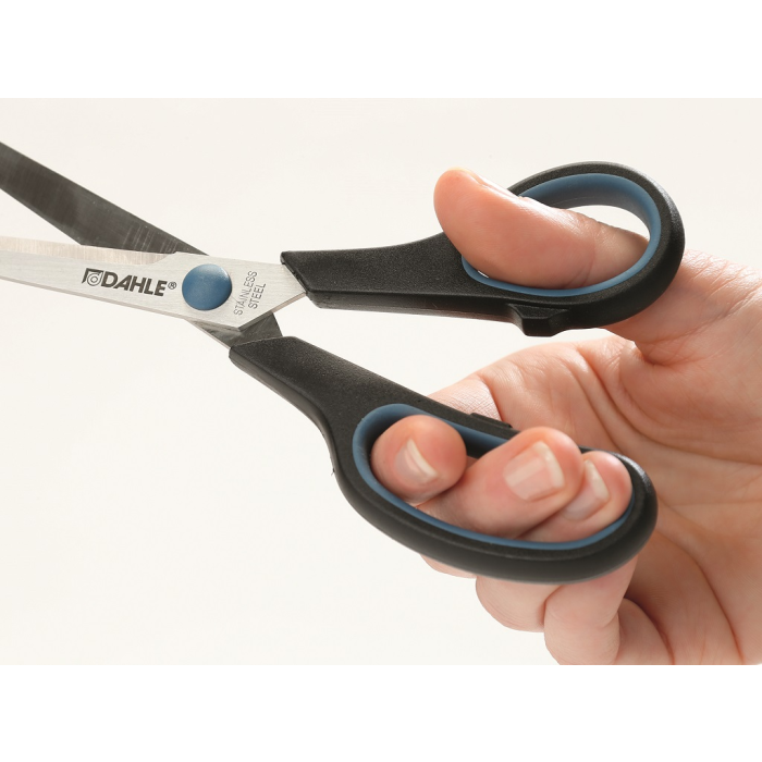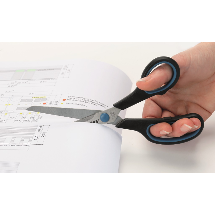 Nožnice s pohodlným úchopom a mäkkými rukoväťami s gumovou podšívkou. Nehrdzavejúca, špeciálne kalená oceľ nožníc pre dlhú životnosť. Brúsené čepele nožníc pre dlhotrvajúcu ostrosť. Vysokokvalitné polypropylénové rukoväte perfektne padnú do ruky. Mäkké rukoväte s gumovou podšívkou pre pohodlie pri strihaní. Farba čierna/modrá. Veľkosť: 20 cm