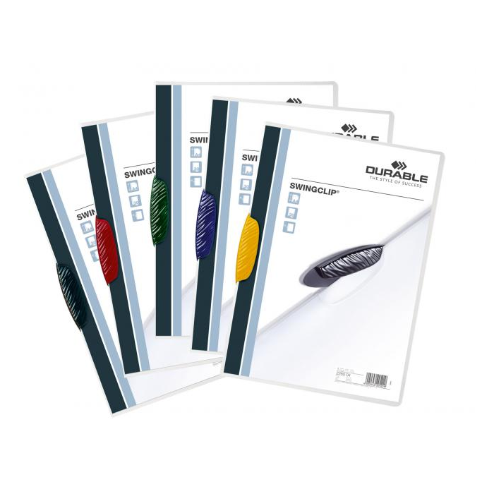 Obal z pevného číreho polypropylénu s nepriehľadným farebným vyklápacím klipom. Formát A4. Kapacita 1-30 listov. Väčšie balenie 25 ks. Farba klipu: mix farieb Farba obalu: číra Kapacita: 1-30 listov
