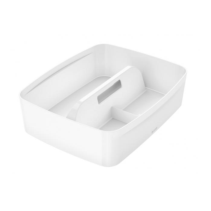 Univerzálna priehradka s držadlom určená na prehľadnú organizáciu predmetov vnútri boxov Leitz MyBox® veľkosti L, ale možno ju použiť aj samostatne. Je odolná voči poškriabaniu a vodotesná, má guľaté rohy pre jednoduché čistenie. Rozmery 318 × 385 × 198 mm.