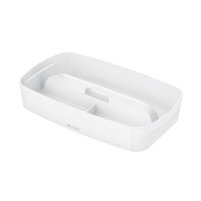 Univerzálna priehradka s držadlom určená na prehľadnú organizáciu predmetov vnútri boxov Leitz MyBox® veľkosti S, ale možno ju použiť aj samostatne. Je odolná voči poškriabaniu a vodotesná, má guľaté rohy pre jednoduché čistenie. Rozmery 307 × 181 × 56 mm.