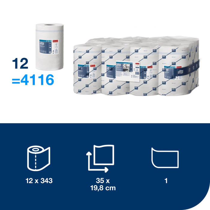 Jednovrstvová viacúčelová papierová utierka Tork Reflex™ je ideálna na stieranie a ručné utieranie vďaka svojej sile a vysokej absorpcii. Túto papierovú utierku možno použiť v Tork Reflex™ mini zásobníku so stredovým odvíjaním na dávkovanie po jednom útržku, ktorý znižuje spotrebu a minimalizuje riziko krížovej kontaminácie. V predaji po balení (12 roliek).