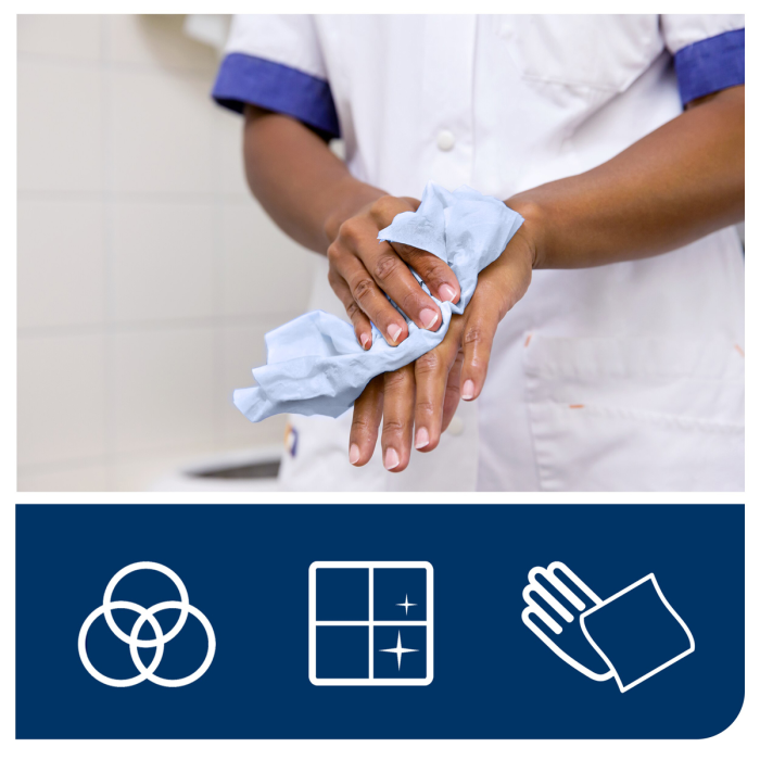 Tork Basic dvojvrstvová papierová utierka je ideálna na základné úlohy utierania, na ručné utieranie a tam, kde je dôležitá úspora nákladov. Táto papierová utierka sa môže používať v Tork® zásobníku na kotúče so stredovým odvíjaním, ktorý je vysokokapacitným, viacúčelovým riešením pre profesionálne prostredia, kde sú na utieranie povrchu potrebné obe ruky.