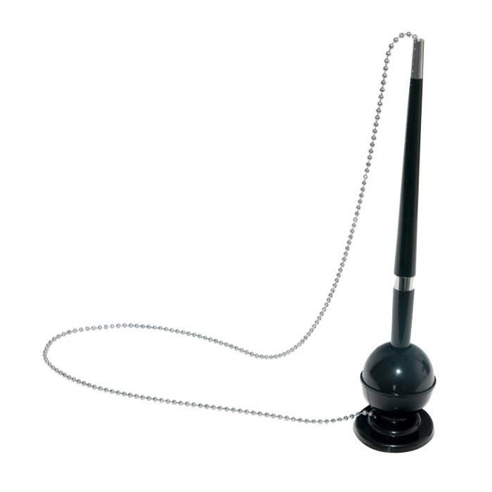 Plastové pero moderného dizajnu na stojane so stabilnou prilepovacou základňou, spojené s kovovou retiazkou. Vhodné pre verejné miesta, ako sú pošty, recepcie, kancelárie, sekretariáty a pod. Farba stopy modrá. Bez možnosti dokúpenia náhradnej tuhy. Väčšie balenie 50 ks.
