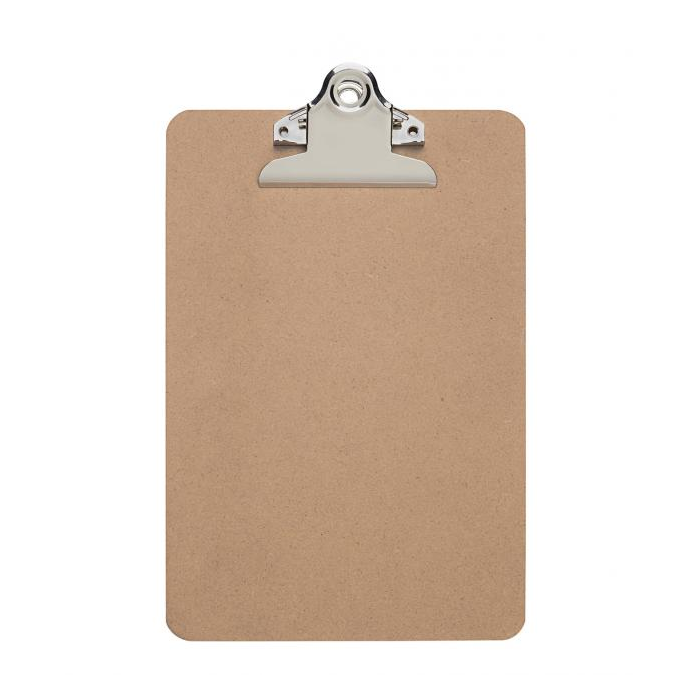 Stabilná písacia podložka A5 z dreva s masívnym nostalgickým oceľovým klipom so silnou pružinou s možnosťou zavesenia. Neošetrený povrch pre prirodzený vzhľad s jemne zaoblenými hranami. Ideálna aj do výloh alebo recepcií alebo pre menu v reštauráciách. Rozmery 16 × 25,5 × 3 cm, hrúbka podložky cca 0,3 cm, kapacita klipu cca 1,5 cm, hmotnosť 0,171 kg. Podložka je recyklovateľná. Formát A5. Farba hnedá.
