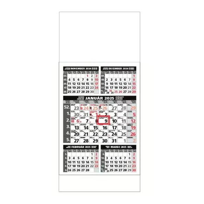 Plánovací kalendár s 5-mesačným kalendáriom s menami v SK+CZ, názvy mesiacov a dní v SK, CZ, UK, DE a HU.