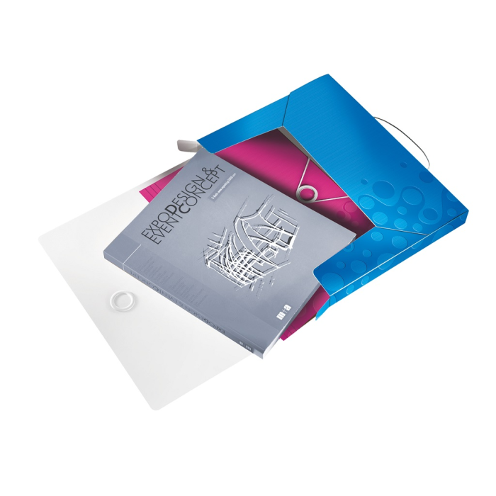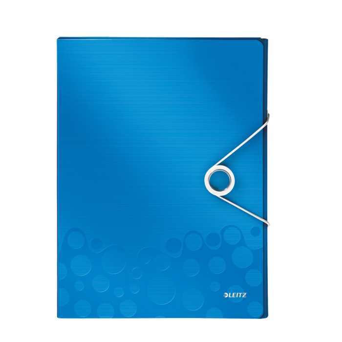 Nepriehľadný polypropylénový box na prenos objemnejších spisov, cenníkov, katalógov a pod. do formátu A4. V dizajne rady WOW v žiarivých farbách. Praktické zatváranie gumičkou na kovový krúžok. Rozmery (v × h × š) 330 × 250 × 37 mm. Väčšie balenie 5 ks. Farba metalická modrá.