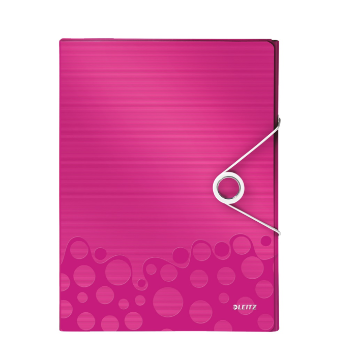 Nepriehľadný polypropylénový box na prenos objemnejších spisov, cenníkov, katalógov a pod. do formátu A4. V dizajne rady WOW v žiarivých farbách. Praktické zatváranie gumičkou na kovový krúžok. Rozmery (v × h × š) 330 × 250 × 37 mm. Väčšie balenie 5 ks. Farba metalická ružová.