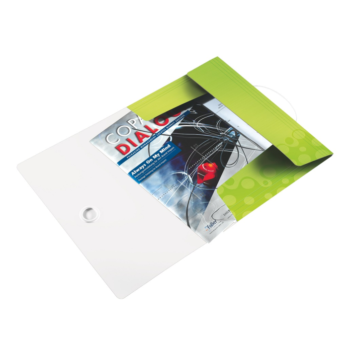 Trojchlopňový obal na dokumenty do formátu A4 z polypropylénu. V dizajne rady WOW v žiarivých farbách. Uzatváranie uchytením na gumičku. Kapacita 150 listov. Väčšie balenie 10 ks. Farba metalická zelená.