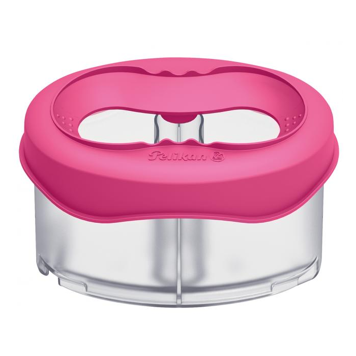 Nádoba na vodu - priehľadná s úchytom, ktorý umožňuje pripojiť nádobu na vodové farby, aby sa zamedzilo vyliatiu vody. Kompatibilná s vodovými farbami Pelikan K12 a Space+. Na vrchu nádoby umiestnený držiak na položenie štetca. Farba ružová.