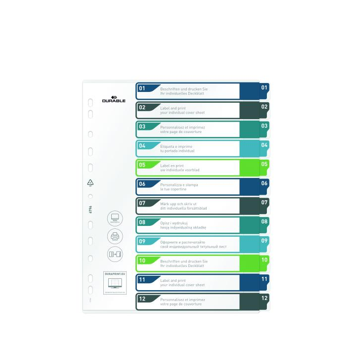 Plastový rozraďovač DURABLE 1-12 potlačiteľný farebný