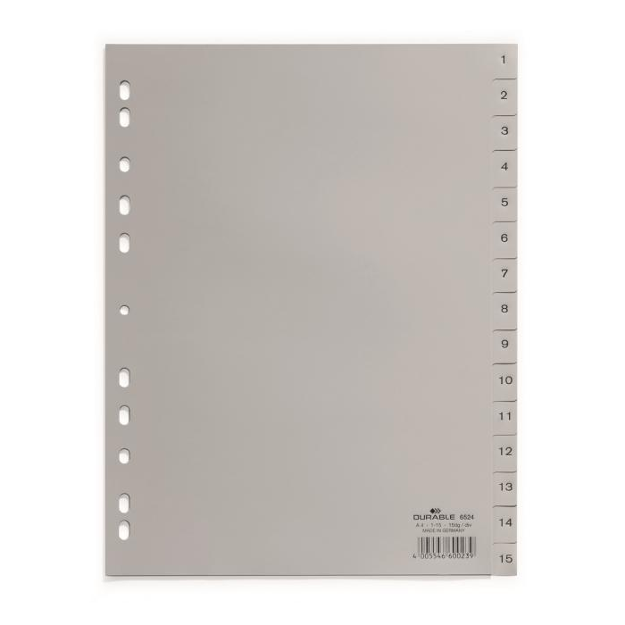 Číselný rozraďovač z polypropylénu. Formát A4, euro-dierovanie. Balenie jedna sada v polyesterovom sáčku. Väčšie balenie 20 sád. Farba sivá. Farba: sivá Formát: A4