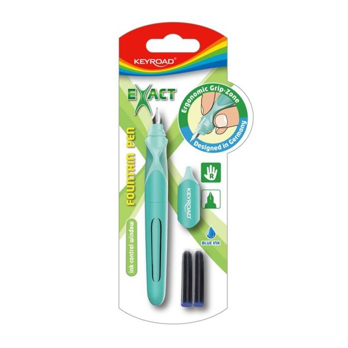 Plniace pero KEYROAD, ergonomické, 2 náplne zdarma, blister, mix farieb