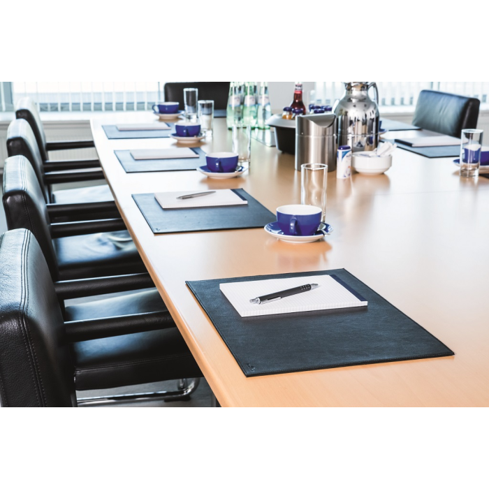 Podložka na stôl vysokej kvality vyrobená z najjemnejšej zrnitej kože. Ručná výroba, prešívaný lem, zadná strana z vysokokvalitného fleesu. Rozmery 42 × 30 cm. Farba čierna.