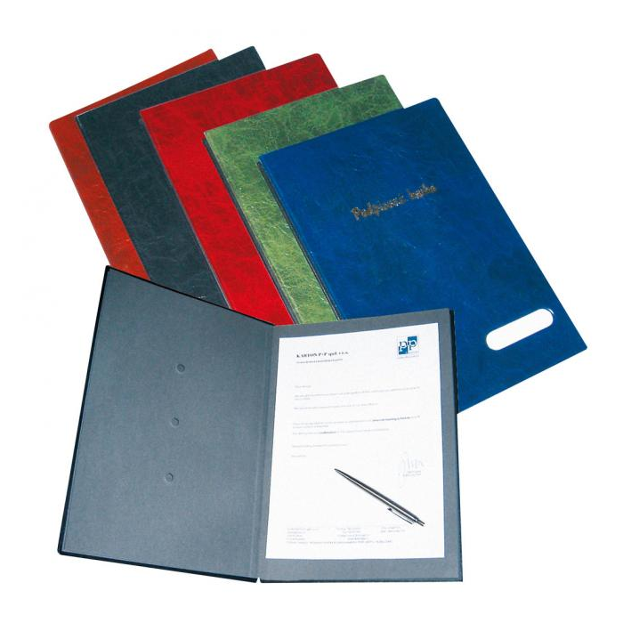 Podpisová kniha 14-dielna s okienkom na prednej strane na jednoduchú výmenu popisovateľného štitka, rozťahovateľný chrbát pre zvýšenie kapacity. Úprava v imitácii kože.