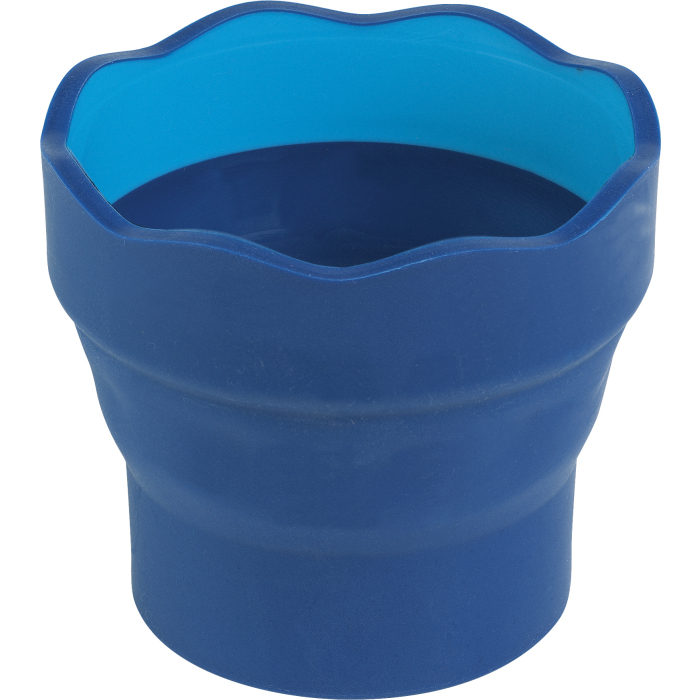 Vlnitý okraj je vhodný na umiestnenie štetca. Veľmi pevný. Vhodný pre deti od šesť rokov. · Praktický skladací mechanizmus pre lepšie skladovanie a prepravu · Jednoduché čistenie · Silný, protišmykový materiál · Vlnitý okraj pre odkladanie ceruziek či štetca · Farba: modrá · Pohár nie je vhodný na rozpúšťadlá (terpentín)