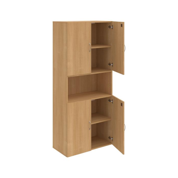 Kombinovaná skriňa - dvere/nika. Dôraz na funkčnosť a cenu. Kvalita a variabilita s nízkymi obstarávacími nákladmi. Materiály výrobcov z Európskej únie.Obojstranne pohľadový chrbát. Zabezpečenie políc proti náhodnému vysunutiu. 45 rôznych prvkov pre Vaše potreby a požiadavky. V našej ponuke nájdete skriňové moduly výšky 185 cm, 111 cm alebo 74 cm a šírky 80 cm alebo 40 cm. Hĺbka všetkých modelov skríň radu Drive je 40 cm (42 cm s dverami). Chrbát, vyrobený z 3 mm hrubých dosiek HDF, je obojstranne pohľadový, takže skrine môžete použiť ako priestorový deliaci prvok. Vďaka polohovateľným policiam (hrúbky 18 mm) je možné priestor prispôsobiť Vašim predstavám. Základná výška úložného priestoru je prispôsobená výške štandardného šanónu. Dvere sú chránené 2mm hranou ABS a osadené kvalitným kovaním s doživotnou zárukou. Okrem plných a presklených dverí Vám ponúkame aj skrine s roletovým systémom. Pokiaľ sa rozhodnete pre umiestnenie skríň na podlahu, nezabudnite si doobjednať rektifikačné nohy, ktoré nie sú štandardnou súčasťou objednávky. Aby sa zásielka dostala v poriadku až do Vašej kancelárie, dodávame skrine demontované v niekoľkých samostatných a bezpečne zabalených balíkoch. Súčasťou každého balenia je tiež prehľadný návod. Na skrive Drive dostanete záruku 5 rokov.