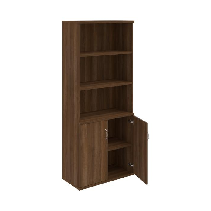 Kombinovaná skriňa - dvere/nika. Kancelárske skrine STRONG majú robustnú konštrukciu a vyššiu nosnosť políc ako bežné kancelárske skrine.V ponuke sú skriňové moduly s výškou 185 cm, 111 cm alebo 74 cm a šírky 80 cm alebo 40 cm.Hĺbka všetkých modelov skriňového radu STRONG je 40 cm.Chrbát, vyrobený z 8 mm hrubých dosák, je obojstranne pohľadový, takže skrine môžete použiť ako priestorový deliaci prvok. Hrúbka samotných políc je 25 mm, čo znamená nosnosť 80 kg na 1 policu.Korpusy, dvierka a police skríň sú olepené odolnou 2mm ABS hranou, ktorá garantuje dostatočnú ochranu proti poškodeniu.