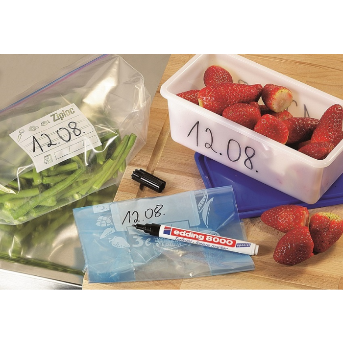 Popisovač edding 8000 freeze s permanentným rýchloschnúcim atramentom, odolným voči mrazu. Maximálne vhodný na označovanie a popisovanie obalov a dóz do zmrazeného prostredia. Hrot okrúhly, šírka stopy 1 mm.