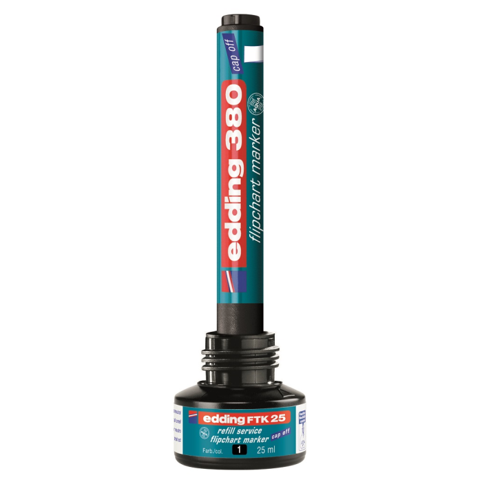 Popisovač s atramentom na vodnej báze a vlastnosťou Cap off, zabraňujúcou vysychaniu atramentu pri otvorenom hrote aj niekoľko dní. Na popisovanie flipchartových blokov a iných archov papiera. Opätovne naplniteľné atramentom FTK 25 (obj. kód ED625101), ktorý neprepíja na druhú stranu papiera. Hrot okrúhly, šírka stopy 1,5 - 3 mm. Väčšie balenie 10 ks.