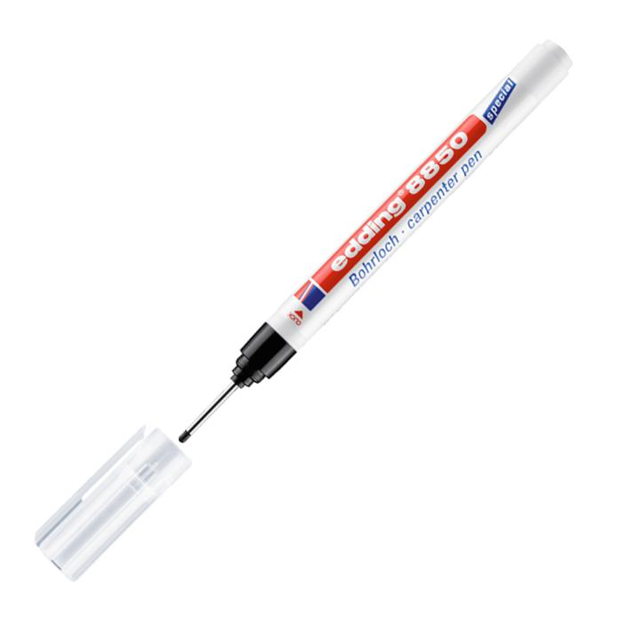 Permanentný popisovač s extra dlhým a tenkým hrotom určený na označovanie ťažko prístupných miest (napr. dier pri vŕtaní). Hrot v kovovej objímke, šírka stopy 1 mm.