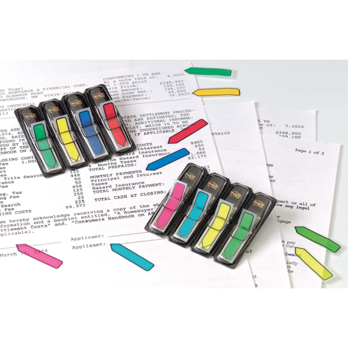 Úzke acetátové záložky do kníh, časopisov, ako register do cenníkov, kartoték, katalógov, zakladačov, archívov a pod. Priehľadná lepiaca čast a farebná časť na označenie.Prelepiteľné, znovunalepiteľné a popisovateľné. Rozmery záložky 12,5x43 mm.Dodávané v kombinácii 4 základných (červená,zelená, modrá, žltá) alebo 4 neónových farieb (žltá, fialová, ružová, modrá) po 24 lístkov.Záložky s potlačou šípky upozorňujú na konkrétnu informáciu v texte. Šírka indexu 12,5 mm, v balení 4 farby po 24 lístkov.
