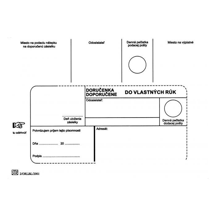 Poštové obálky B6 doručenka do VR bez OD, olizové 100 ks